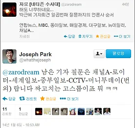 전체 글 썸네일형 리스트형 국정원의 인혁당 사건 왜곡 트윗을 공개합니다 ▲ 2012년 9월 12일, 인혁당 사건 희생자 유족들이 서울 여의도 새누리당사 앞에서 박근혜 대선 후보를 규탄하는 기자회견 도중 희생자의 영정을 들고 서럽게 울고 있다. (출처 : 한국일보) 네티즌 수사대 '자로'입니다. 인혁당 사건은 박정희 유신독재 시절 대표적인 공안사건이자 최악의 사법살인 사건입니다. 그런데 국정원 요원들은 트위터를 통해 인혁당 사건의 진실을 왜곡하는 트윗을 무수히 쏟아냈습니다. 뉴스타파는 국정원 확인 및 의심 트위터 계정 658개와 237,494개의 트윗을 공개한바 있습니다. 관련글 - 국정원 확인 및 의심 트위터 계정 658개와 게시글 23만여 건 공개 (클릭) 이 트윗들 중 인혁당 사건이 언급된 트윗은 총 '1,357개'에 이릅니다. 이중에서 뉴스타파가 지목한 핵심계정들 중 .. 더보기 국정원의 '곽노현 죽이기'를 아십니까? 저는 국정원의 트위터를 추적해온 네티즌 수사대 '자로'입니다. 저는 간혹 이런 질문을 받습니다. "국정원의 여론조작으로 인해 가장 큰 피해를 입은 사람은 누구라고 생각하세요?" 저는 주저없이 대답합니다. "곽노현 선생님입니다." 뉴스타파는 국정원 확인 및 의심 트위터 계정 658개와 237,494개의 트윗을 공개한바 있습니다. 관련글 - 국정원 확인 및 의심 트위터 계정 658개와 게시글 23만여 건 공개 (클릭) 저는 뉴스타파의 자료를 바탕으로 '곽노현 선생님'에 관한 트윗들을 조사해봤습니다. 그랬더니 무려 1,778개의 트윗이 직접 작성되거나 리트윗 된것으로 나타났습니다. 이중 직접 작성된 트윗들 몇 개를 소개하겠습니다. 2012-02-05 ceasar1000곽노현씨 갈수록 가관입니다. 뇌물질에 아들.. 더보기 박근혜 해외순방 중 벌어진 일들 그동안 박근혜 해외순방 중 벌어진 일들>- 헌정 사상 처음으로 정당 해산 요청 (통합진보당)- 시민단체도 해산시킬 수 있는 '이적단체 강제 해산법' 추진- 정홍원 총리, 역사교과서의 국정화를 검토한다고 발언- 전국공무원노조 압수수색- 문재인 의원 검찰 소환그리고......박근혜가 인도와 스위스 순방을 위한 비행기에 오르자 마자 터져나온 일...남북정상회담 대화록 관련 김무성, 서상기, 남재준 전원 무혐의 발표!관련글 - '盧·金 회담록' 김무성·서상기·남재준 전원 무혐의 (클릭)혹시나 했는데 역시나 터지기 시작하는군요.이대로 가면 원세훈, 김용판도 무죄나올겁니다.특검을 더는 미룰 수 없습니다.그나저나 박근혜가 귀국하는 1월 23일까지 무슨 일이 또 터질지 걱정되네요.모두들 몸조심 하세요... 더보기 쫄리 신부님을 아시나요? '울지마 톤즈'의 주인공... 쫄리 신부님... 수단의 슈바이처... 오늘은 故이태석 신부님이 돌아가신지 4년째 되는 날입니다. http://www.youtube.com/watch?v=nXW9xRV4LdM 벌써 4년... 시간이 참 빠르다는 생각이 듭니다. '울지마 톤즈' 보면서 펑펑 울었던 기억이 생생하네요. 암 선고를 받은 직후에도 아무일 없었다는 듯이 기타치고 노래하던 모습...수단의 어린이들이 '사랑해 당신을' 노래를 한국어로 부르던 모습... 제 평생 잊을 수 없는 감동이었습니다. 차갑게 얼어붙은 사회분위기 때문인지 이태석 신부님의 미소가 더욱 그리운 겨울입니다. 우리나라의 정치인, 경제인, 언론인, 종교인들이 이태석 신부님을 닮아갔으면 좋겠다는 생각을 해봅니다. 故이태석 신부님의 명복을 빕니다. 더보기 당신들이 기자입니까? 연기자입니까? 뉴스타파는 온라인상에서 사진으로 떠돌아다니던 '박근혜 신년 기자회견 질문지'를 입수하여 그 전문을 공개했습니다. 박근혜가 야심차게 준비한 신년 기자회견은 결국 각본있는 드라마, 즉 '짜고치는 고스톱'이었음이 만천하에 드러난 것입니다. 관련글 - 박근혜 회견 사전 질문지 입수... "각본대로 읽고 답했다" (클릭) 문제는 짜고 치는 고스톱이라는 것을 애써 숨기려 했다는 것입니다. 이 질문지는 청와대 홍보수석실에서 외부유출 금지와 함께 일부 청와대 출입기자들에게만 공유했다고 합니다. 특히 이날 기자회견에는 외신 언론사 중에서 '로이터 통신'과 '중국 CCTV'가 사전에 질문을 하기로 조율을 했다고 합니다. 그런데 다른 외신기자들은 질문자가 미리 정해졌다는 것도 모른채 기자회견장에 왔다고 합니다. 사전에 상의.. 더보기 제가 만든 '교학사 일병 구하기' 포스터입니다 장장 5시간 동안 만든 역작(?) 입니다. ^^; 아직 포토샵에 그리 능하지 않아 많이 부족한 점 양해바랍니다. ㅎㅎ 후속작을 기대해주세요. ^^; 더보기 안녕들 하십니까? 여기는 중국 만리장성입니다. 저의 트친으로부터 다음과 같은 메일을 하나 받았습니다. 안녕하세요? 자로님. 중국 북경에서 10년째 직장생활을 하고있는 한 가정의 가장 입니다. 한국에서 일어나고 있는 일들을 인터넷을 통하여 접하면서 분노를 느끼는 일반 소시민입니다. 직접적으로 한국의 집회같은데 참석하지는 못하지만 지난 주말 북경에 계신 같은 뜻을 가진 주위분들과 유학생들과 함께 중국의 대표 건축물인 만리장성에 올라 조그마한 시위를 진행했습니다. 별볼일 없는 사진 몇장이지만 이 사진들이 고국 대한민국의 민주화를 위해서 조금이나마 도움이 되었으면 